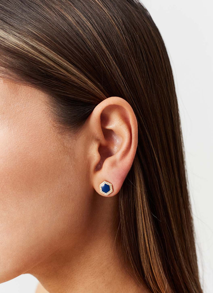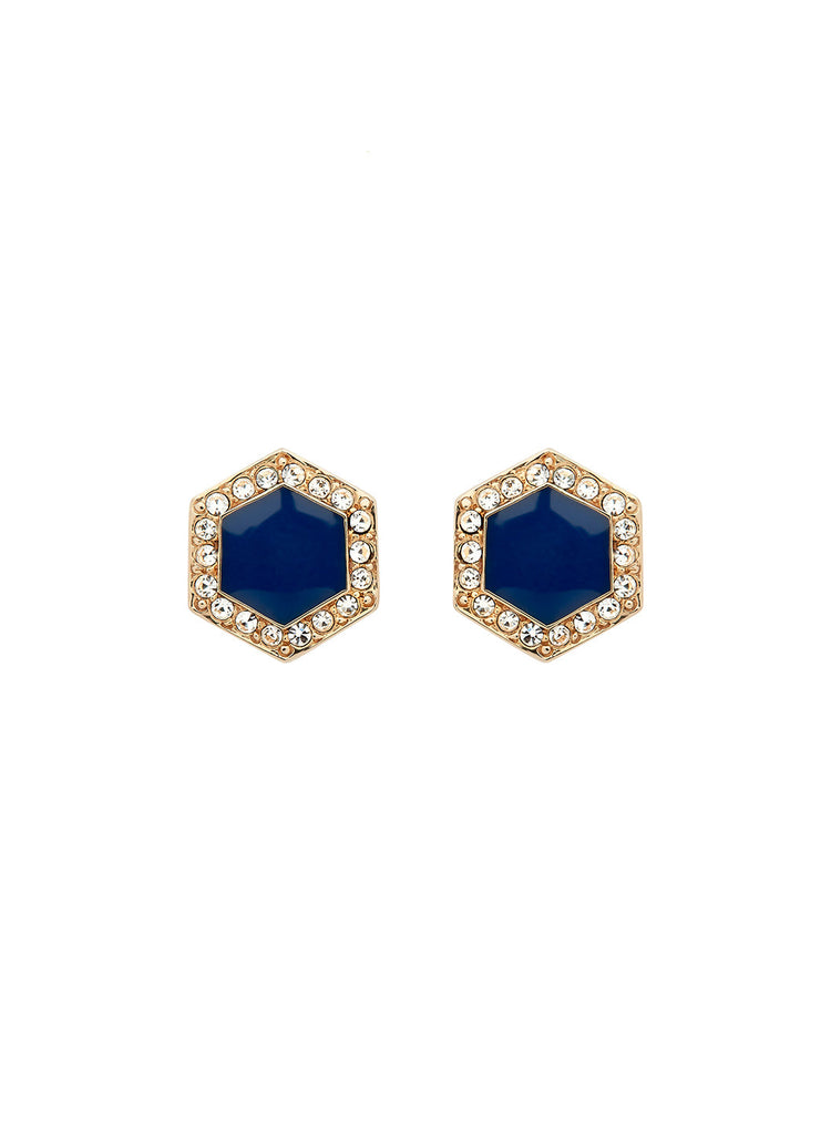 Blue Crystal Hexagon Earrings