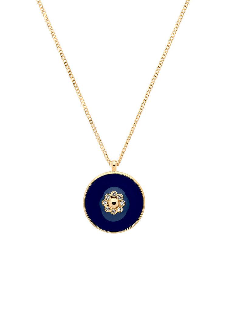 Blue Crystal Flower Long Pendant