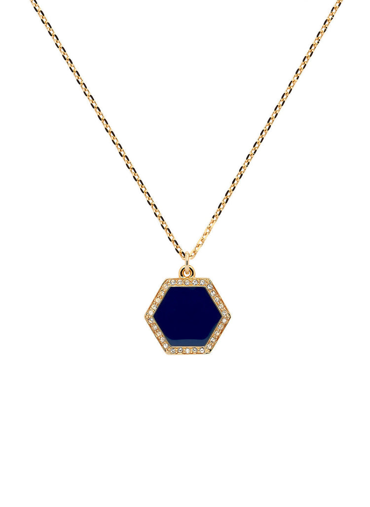 Blue Crystal Hexagon Long Pendant