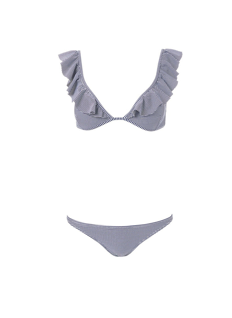 • Brazil Navy Gingham Bralette Over The Shoulder Frill Bikini