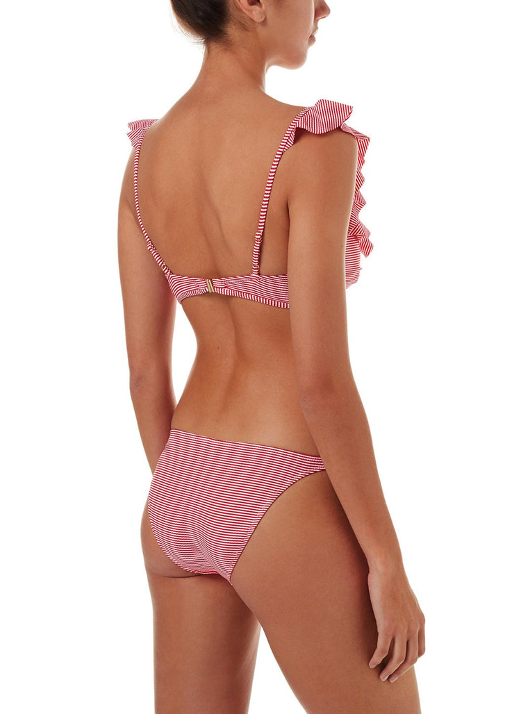 • Brazil Red Gingham Bralette Over The Shoulder Frill Bikini