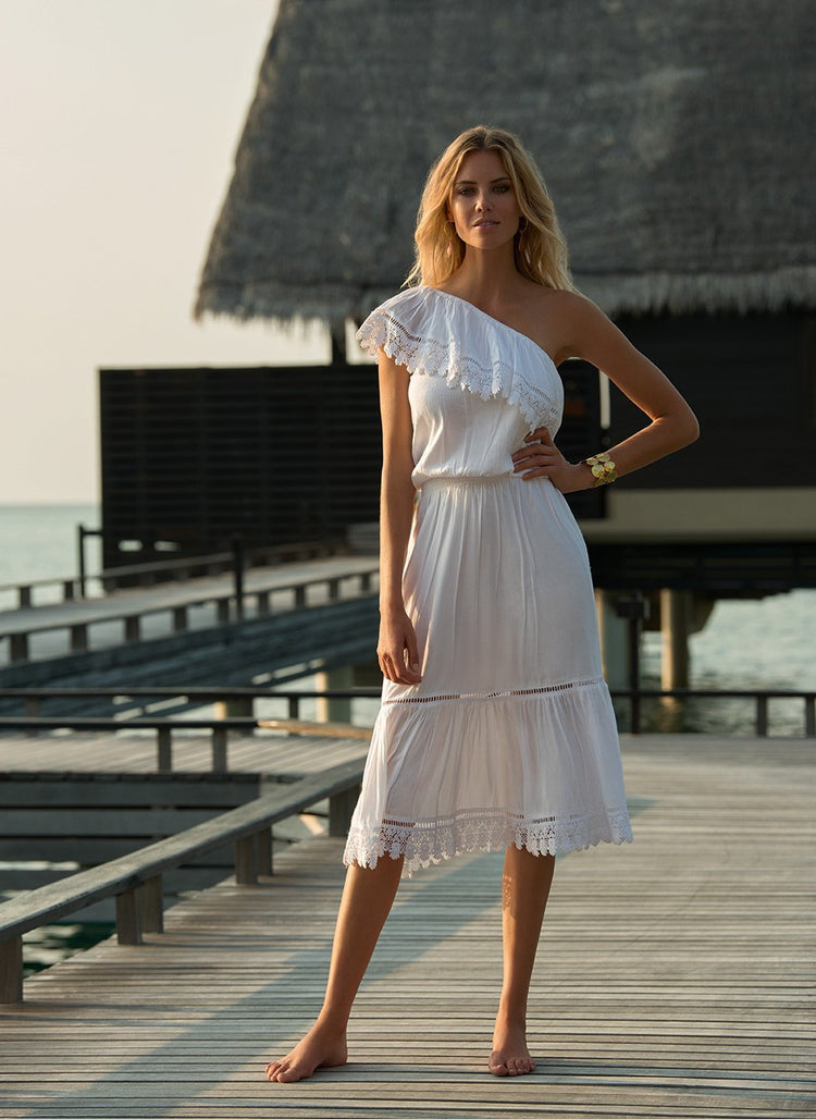 Jo White One Shoulder Embroidered Frill Midi Dress £168.00 £240.00