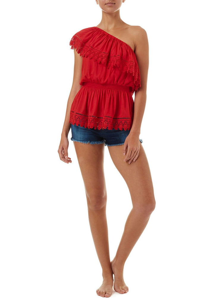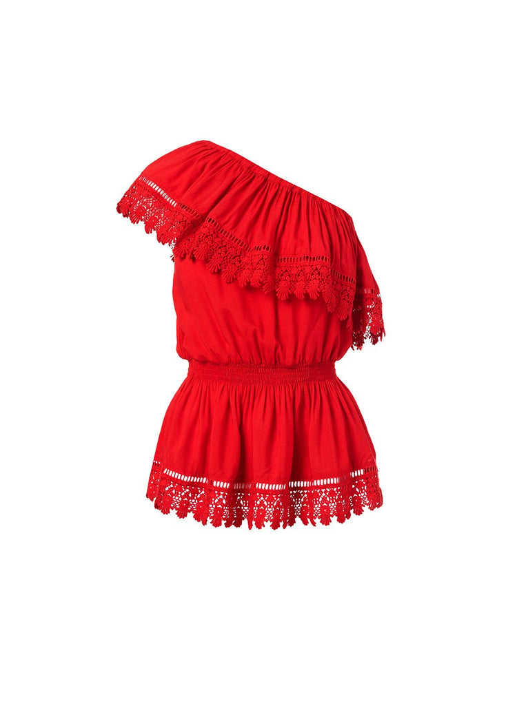 Joanna Red One Shoulder Embroidered Frill Top £123.00 £175.00