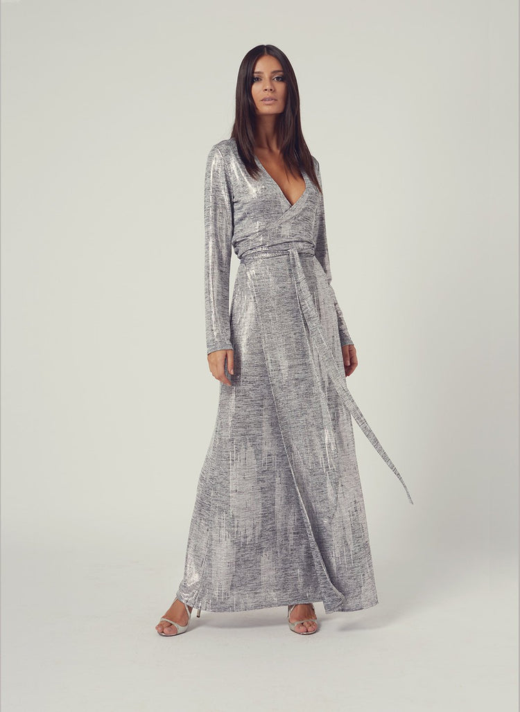 Look 3 Wrap Maxi Dress Silver £343.00 £490.00