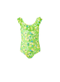 Let your little one jump into adventure on your next vacation in the citrus inspired Girls Kiera in ‘Lime Lemons’ print. This adorable onepiece will add joy to her swimwear wardrobe with frill details around the neck, shoulders and back complimented by the fun fruity print. Baby Kiera is made with SPF 50+ protection. Slip on the Girls Ashley in Yellow for an apres pool look!